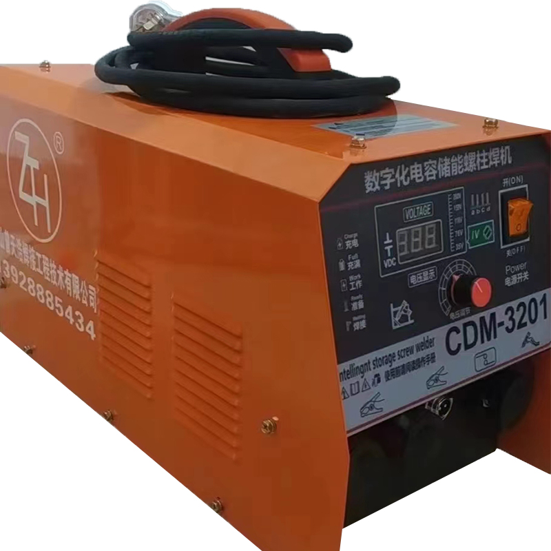儲(chǔ)能式螺柱焊機(jī)可將螺柱、內(nèi)螺紋螺柱、銷釘?shù)阮愃频脑赣诮饘俟ぜ稀T诤附舆^程中,通過元件尖端放電使儲(chǔ)能電容放電,放電時(shí)間0.001-0.003秒,不需要?dú)怏w或陶瓷環(huán)保護(hù),熔深約0.1MM。